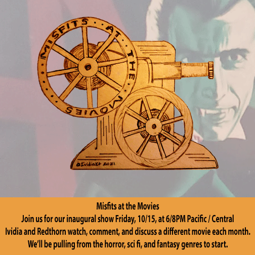 Misfits at the Movies will be streaming every 3rd Friday of the month starting on 10/15. Join Ividia and Redthorn/Matt as Ividia introduces him to classic horror and sci-fi starting with an offering from Hammer Studios – The Horror of Dracula.